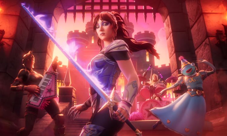- Un Escenario Principal con temática de castillo medieval que recuerda el diseño de su gira “Visions of Damsels & Other Dangerous Things” sirve como el fondo perfecto para las pistas de improvisación de Chappell “Pink Pony Club” —nuevo en Fortnite— y el regreso de “Good Luck, Babe!”, “HOT TO GO!” y “The Giver”.