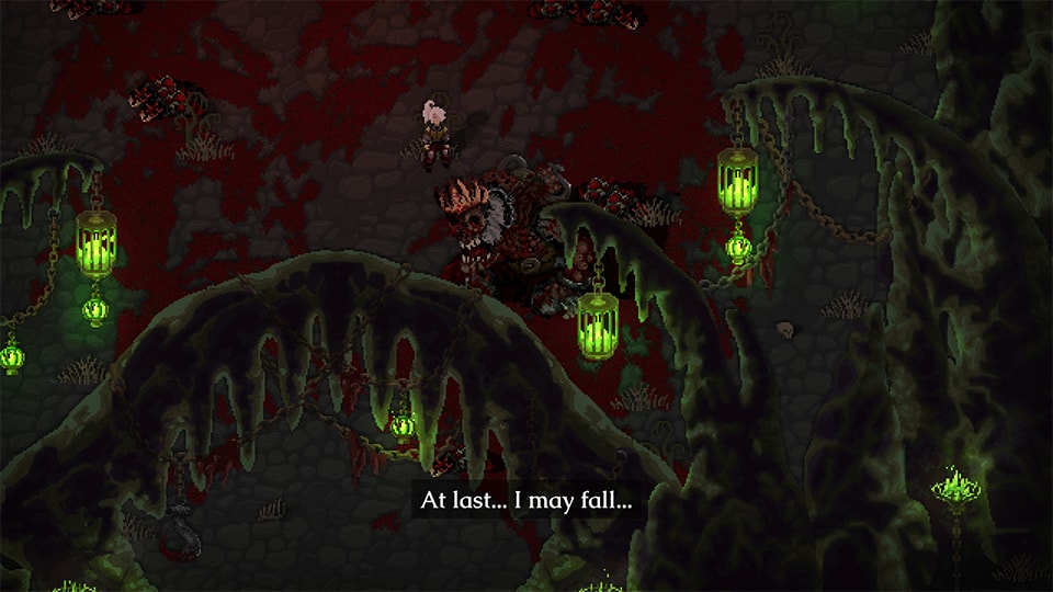 En cuanto a gráficos se refiere, como hemos mencionado al principio de esta reseña, el estilo visual utilizado es pixel art y destaca por la buena utilización de técnicas modernas del mismo. Los enemigos y la propia heroína se ven bien definidos y podemos inclusive notar algunas sombras por ahí y por allá que se van moviendo de acorde a la perspectiva que nuestra heroína tenga.
