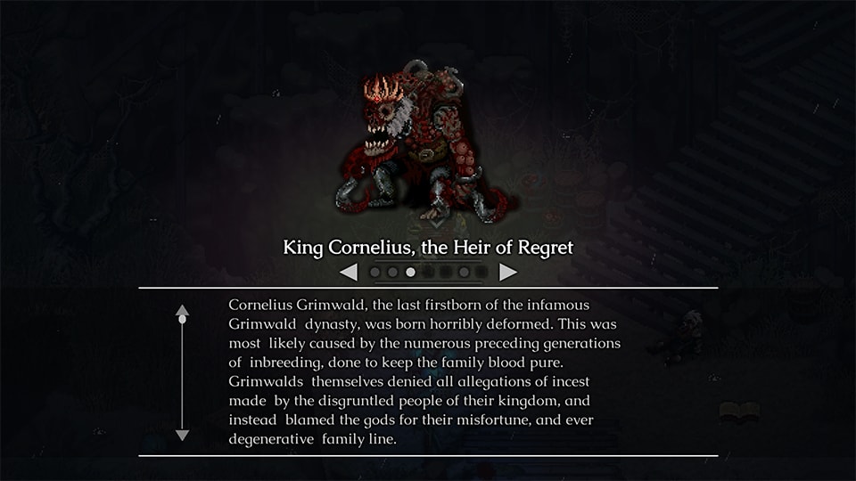 Hay que hacer mención honorífica al diseño de los enemigos, sobre todo los Acólitos, ya que se muestran muy bien detallados y destacan por ser bastante feos (en el buen sentido de la palabra, estamos hablando de monstruos, es como un elogio, hehe). Como todo juego basado en pixel art, las opciones para configurar los gráficos son modestas y en el caso de Morbid: The Seven Acolytes son virtualmente inexistentes. No hay una sola opción para configurar los gráficos y sinceramente no le hace falta.